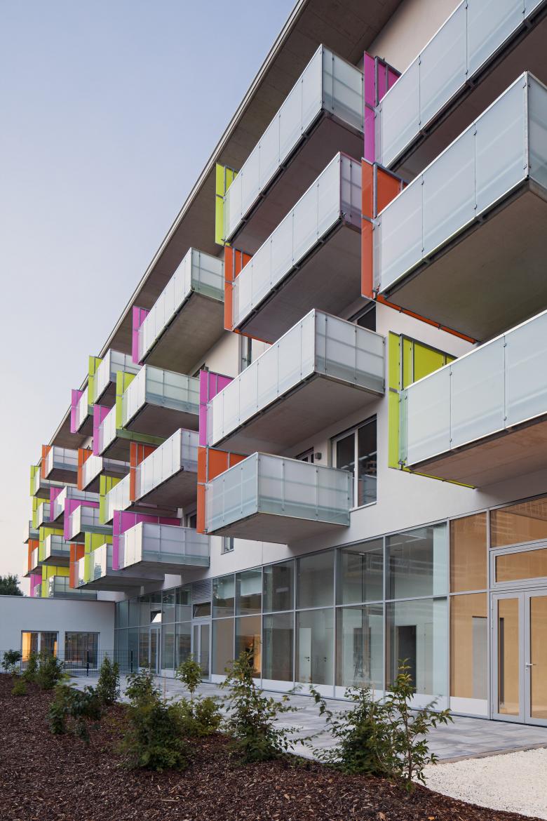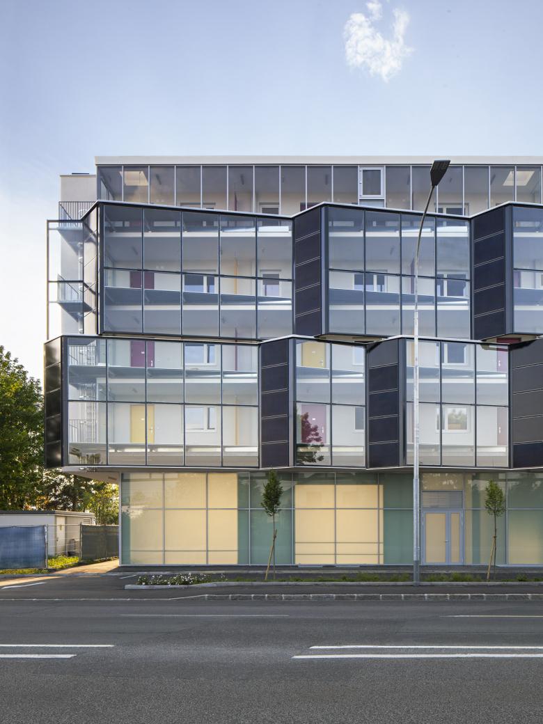 Die geförderte Wohnanlage mit 150 Einheiten wurde in zwei Phase errichtet, wobei 16 der Wohnungen speziell für SeniorInnen ausgestattet wurden und ein Teil für alleinerziehende Mütter oder Väter. Die Gemeinschaftsbereiche, darunter ein Café, Veranstaltungsräume sowie die Kinderwagen- und Fahrradabstellplätze befinden sich im Erdgeschoss und fördern aufgrund ihrer transparenten und einladenden Bauweise die Kommunikation der BewohnerInnen untereinander.