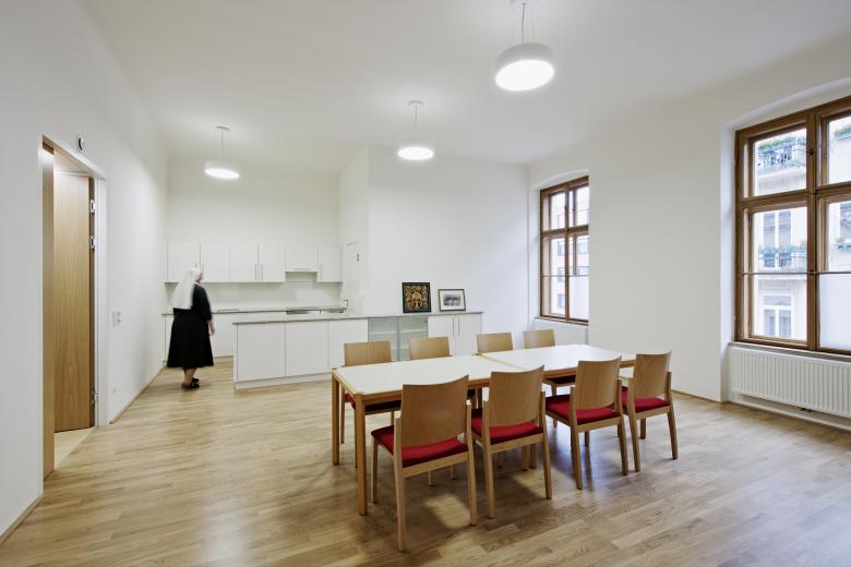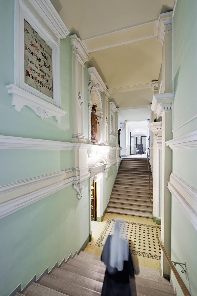 Bei dieser komplexen Aufgabe ging es nicht nur darum, die Bedürfnisse der 40 Klosterschwestern, der PatientInnen und des Personals in den Vordergrund zu stellen, sondern durch sensible Formensprache eine Architektur zu schaffen, die Zukunft und Vergangenheit im Jetzt zusammenführt.