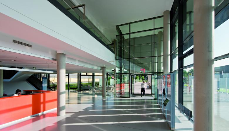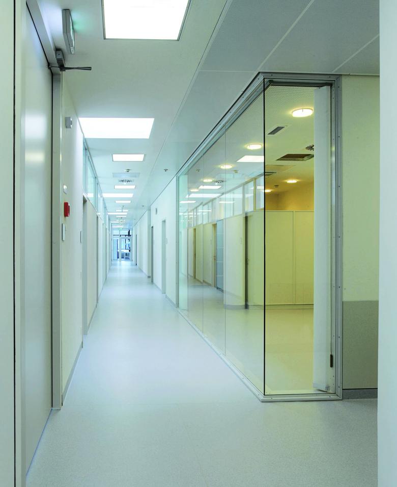 Das Projektteam manifestierte diese Vision einer großzügigen, offenen Architektur bereits im Wettbewerbsentwurf und überzeugte damit Jury und AuftraggeberInnen. Heute bettet sich der 44.000 m2 umfassende flache Bau mit nur zwei Obergeschossen sanft in die Stadtlandschaft Klagenfurts. Wie eine kleine Gartenstadt besticht das Klinikum, das direkt an die Au-Landschaft der Glan angrenzt, durch seine Transparenz und die einladenden grünen Innenhöfe.