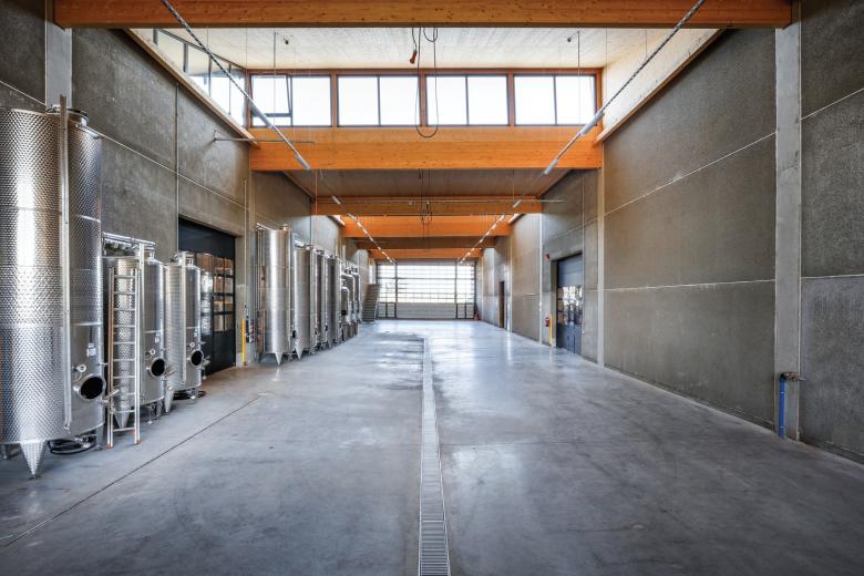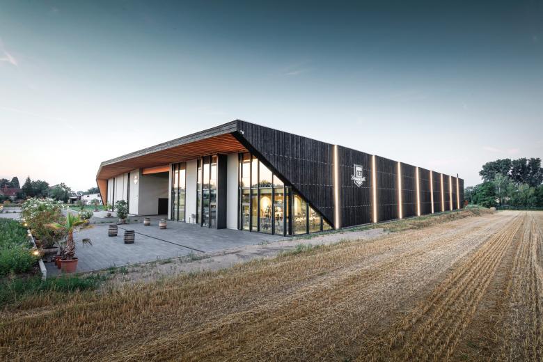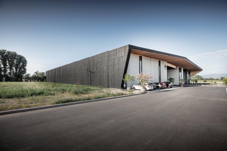 Leicht, modern, großzügig, repräsentativ und reduziert liegt der Bau für das Weingut Nett in der Pfalz: Zwei langgestreckte Hallen verbunden durch eine überdachte Passage wirken wie ein geometrischer Rochen, der sich über der Landschaft entfaltet. In dessen Inneren reifen auf 4.500 m² die Weine des erfolgreichen deutschen Weingutes. Mit Anspruch an höchste Qualität beauftragten die Winzer einen kompletten Neubau, in dem sowohl die gesamte Produktion als auch Verkauf, Lager, Büro und Wohnraum für die Winzerfamilie untergebracht sein würden.