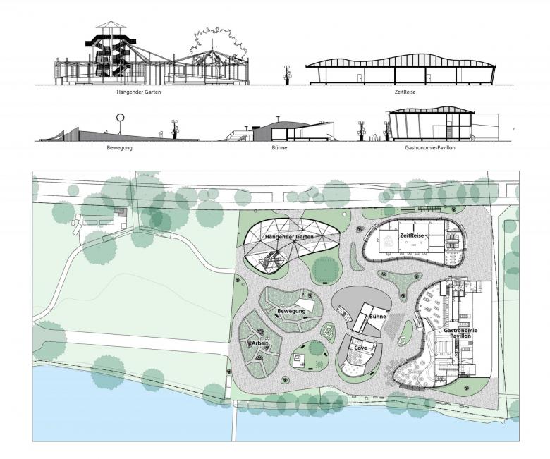 Geplant wurde ein vielfältiges, kulturelles Programm in der nachhaltigen Parklandschaft mit Aussichtsturm, einem hängenden Garten, Picknick- und Arbeitsbereichen, Gastronomie, Konzertbühne und Zeitreise-Pavillon geboten. Gemeinsam geniessen, arbeiten oder lernen: Der ErlebnisGarten – ein Ort der Begegnung mit Ausstellung, gastronomischen und kulturellen Angeboten und spielerischen Einrichtungen.