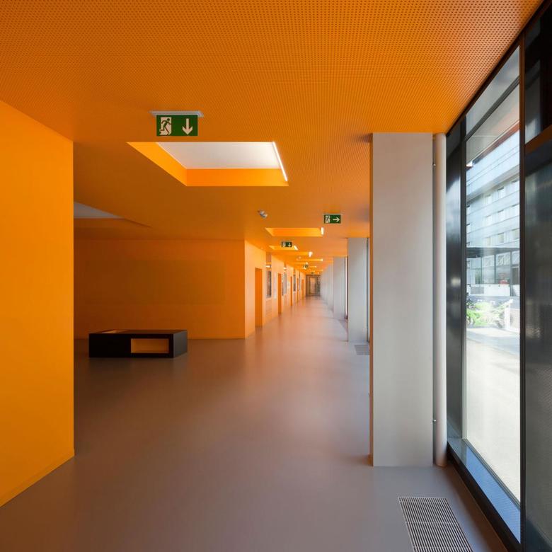 Das 67 Millionen Projekt profitiert von den vielfältigen Vorteilen, die mit diesem strategischen Zentrum in unmittelbarer Nähe des Bahnhofs zusammenhängen, von der optimalen Anbindung an das öffentliche und private Verkehrsnetz, der Nähe zahlreicher Einrichtungen und Dienstleister und der qualitativ hochstehenden Stadtplanung bis zum hohen Personenaufkommen (Reisende, Einwohner, Besucher). Das Gebäude bietet Platz für die Studenten der Abteilungen Engineering und Gesundheit der Haute Ecole ARC.