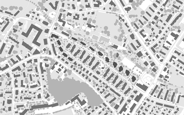 Das Quartier Seebach hat seine Wurzeln in der Ideenwelt der Gartenstadt. Die Ersatzneubauten der Wohnüberbauung Am Katzenbach knüpfen wiederum da an. Die fünf Baukörper weisen lediglich drei Geschosse auf, sind in ihren Grunddimensionen kompakt und suchen eine Fortschreibung der bestehenden Bebauungsstruktur. Durch die leicht geknickten Fassaden werden die Dimensionen der Baukörper gebrochen und rücken in ihren Abmessungen in die Nähe der umliegenden Einfamilien- und Reihenhäuser. Die Fortschreibung betrifft auch den Charakter der Aussenräume, welche am «Gartenteppich» der umliegenden Grundstücke anknüpfen und privat genutzt werden.