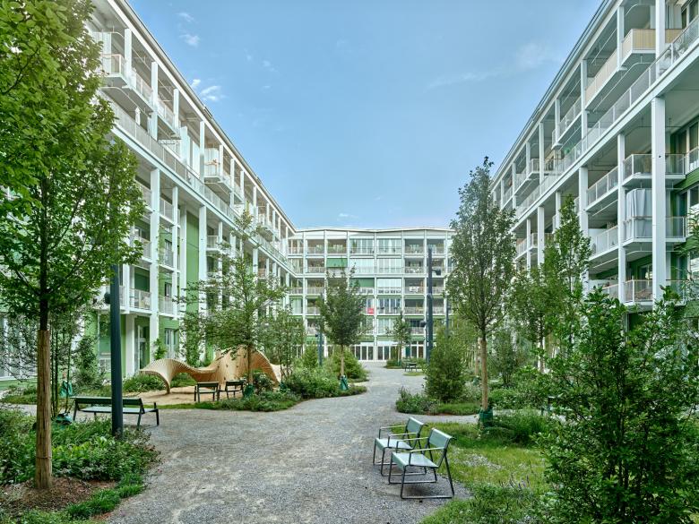 Die soziale Heterogenität des Projekts leistet einen wichtigen Beitrag zur Vitalität des neuen Stadtteils. So wurden die Wohnformen von vier unterschiedlichen Bauherrschaften realisiert: Zum neuen Dialogplatz orientierte Eigentumswohnungen, genossenschaftliche Familien- und Gemeinschaftswohnungen im Kopf der Nordwestseite, Alterswohnungen an der Gasse im Südwesten und kostengünstige Mietwohnungen in Südostlage.