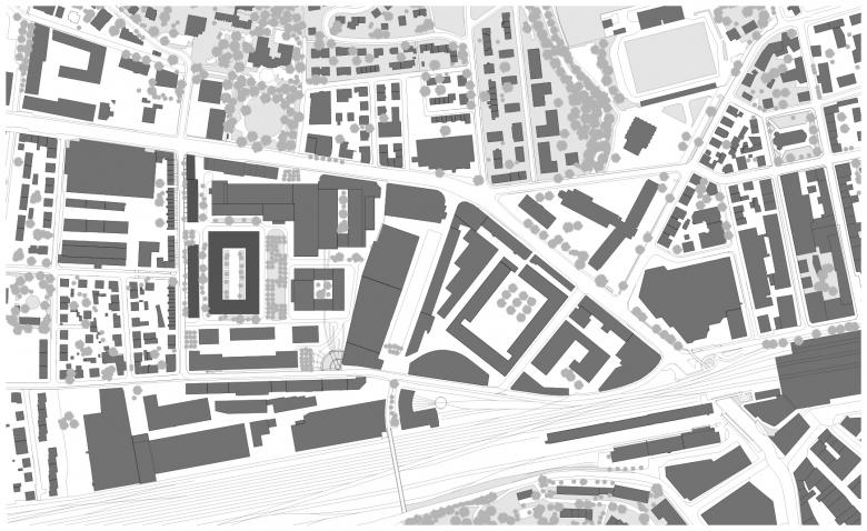 Im Zentrum der Stadt Winterthur entsteht noch bis 2025 der neue Stadtteil Lokstadt. Den Auftakt bildete das zentrale Hofhaus Krokodil, dessen Struktur und Erscheinung als grosser Hallenbau mit Bezug zu den industriellen Vorfahren des Areals entworfen wurde. Dabei waren die Aussenmantellinien und die Grösse des Innenhofs und somit die hohe Dichte des Gebäudes sowie ein öffentlicher Gewerbesockel bereits im Gestaltungsplan vorgegeben.