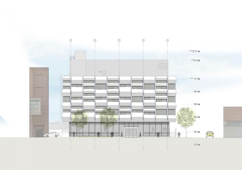 The Glass Hall addition created on the west façade of the original building commands a significant presence along Oliver Street and signals a new intervention in the life of the building. It creates a new entrance on Oliver Street, an important pedestrian link between the newly completed University Bookstore and the John and Frances Angelos Law Center. The Glass hall and the urban plaza that form around its base populates the new pedestrian way with vibrant public amenities that signal the University’s commitment to developing a strong and welcoming urban presence.
