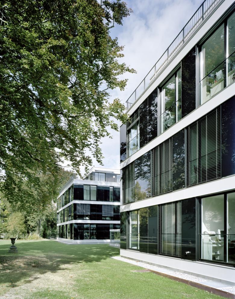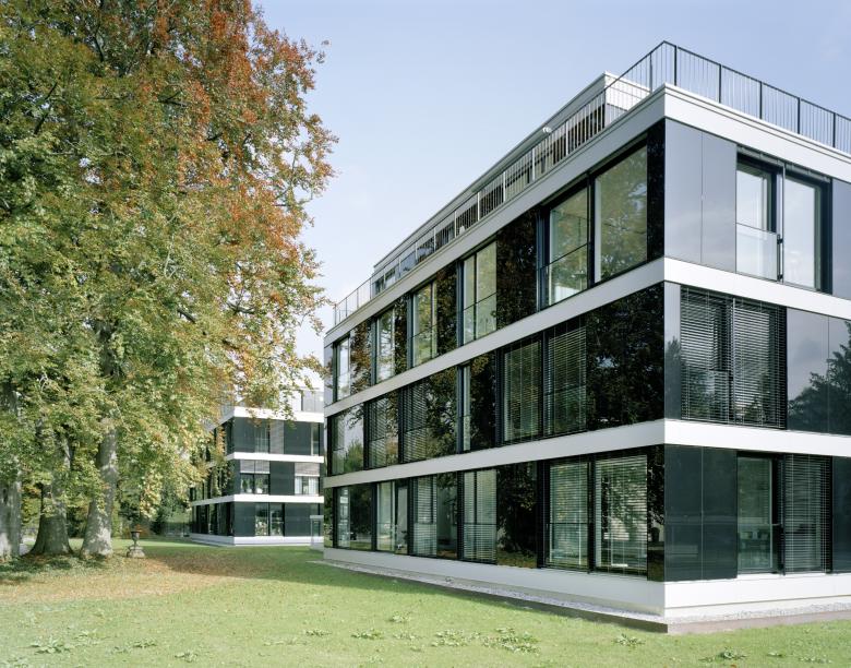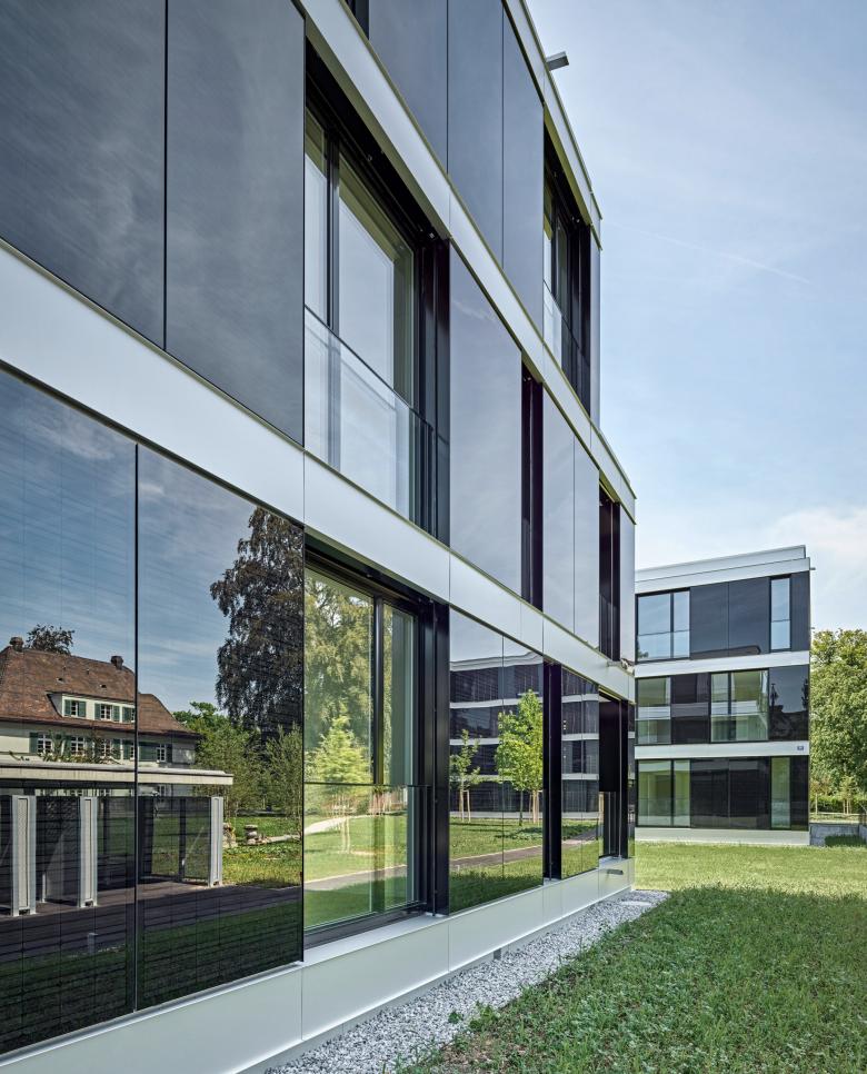 Für den studienhaften Einsatz von Photovoltaikelementen fanden die Bauherrschaft und BGP ideale Voraussetzungen vor: Eine vorteilhafte Lage, trotz Baumbestand wenig Verschattung aus der Nachbarschaft und Bestandsbauten mit schwarz glänzenden Fassaden. Nichtsdestotrotz mussten Leistung, Kosten, die Platzierung der Elemente und die Gestaltung genau untereinander austariert werden. Auch ist die solare Stromproduktion Teil eines ganzheitlichen Energiekonzepts, das passive und aktive Massnahmen kombiniert.