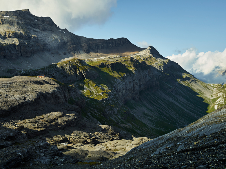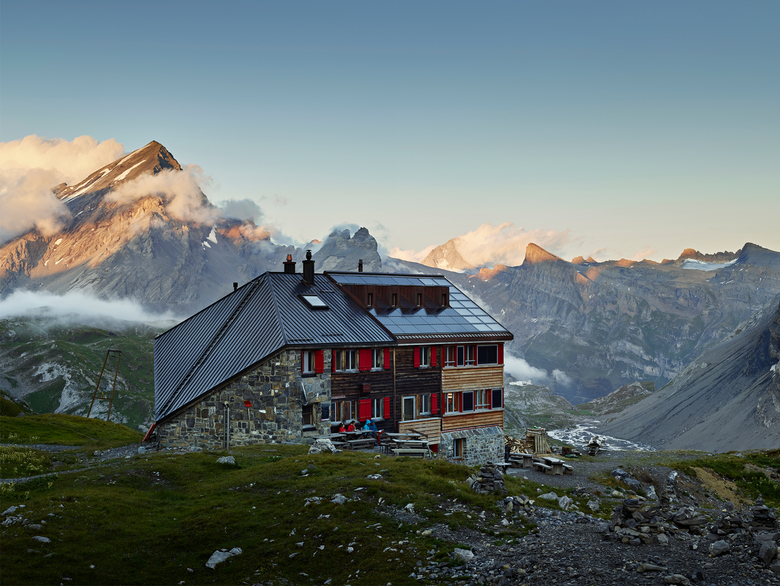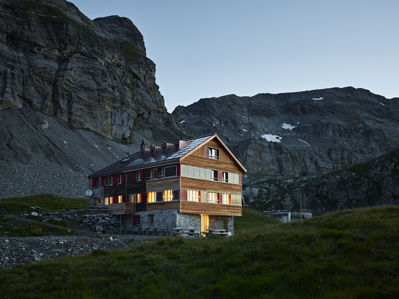 Die Lämmerenhütte – nach einem Lawinenniedergang in den 1990-er Jahren neu gebaut und 2016/17 erweitert – ist in der einmaligen Berglandschaft zwischen Gemmipass und Wildstrubelmassiv auf einem Felsplateau auf 2500 Metern über Meer verortet. Die einfache und kompakte Form, mit entsprechender Konstruktion und Materialisierung in Stein und Holz, gibt der Hütte eine hohe Symbolkraft und strahlt eine angenehme Atmosphäre aus.