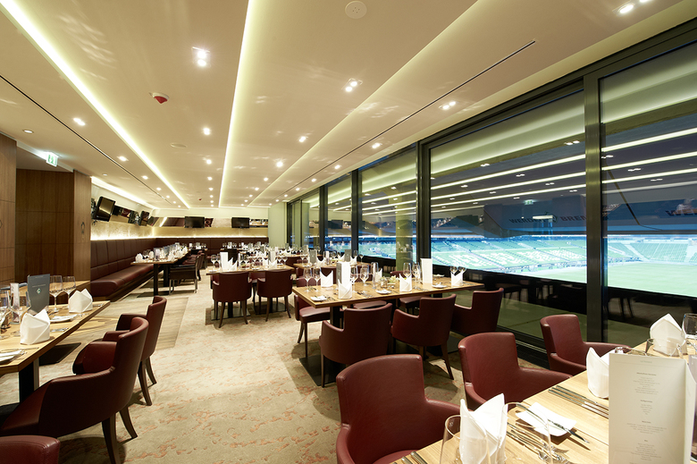 Die Innenarchitektur ist ganz auf das Spielgeschehen ausgerichtet, indem z.B. in den Restaurants die Decke gestaffelt ist und zum Stadioninnenraum höher wird. Die Möblierung der Restaurants ermöglicht von fast jedem der ca. 130 Plätze den Blick auf das Spielfeld. In der Lounge sitzt der Gast leicht erhöht auf einem Podest und kann von dort in entspannter Position das Spiel beobachten.