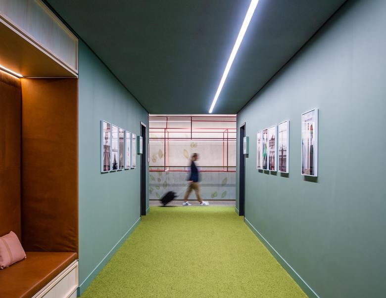 Als Gestaltungskonzept orientiert sich die Innenarchitektur des Designhotels Hilton Garten Inn an den emotionalen Aspekten des Reisens und Ankommens. Der Bezug zur umgebenden Stadt wurde durch die Kooperation mit einem ortsansässigen Künstler hergestellt. Als Beleuchtung wählte candela hauptsächlich indirektes Licht aus Wand- und Deckenfugen, das für eine Wohlfühl-Atmosphäre sorgt. Diese klassische Hotelbeleuchtung wurde durch zwei markante Sonderleuchten ergänzt: Für das zweigeschossige Foyer entwarfen die Lichtplaner eine Lichtmatrix in Form einer dreidimensionalen Gitterstruktur, die als Gegenpart eine große Kugelleuchte in Form eines mystischen Vollmonds aufnimmt. Zum anderen wurde für den Themenraum Baumraum eine filigrane dreigliedrige Blattstruktur als Sonderleuchte konzipiert, die über dem Besprechungstisch zu schweben scheint und dabei alle lichttechnischen Anforderungen erfüllt.
