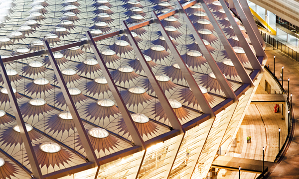 Als signifikantes Element werden die Dachöffnungen am äußeren Dachrand über eine Akzentbeleuchtung einbezogen.