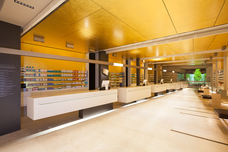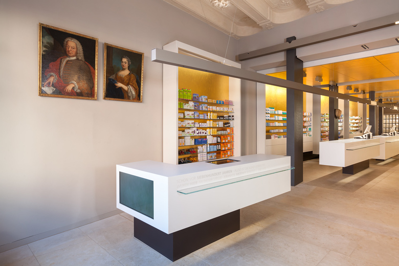 Umgestaltung der „Löwen-Apotheke“ in Trier, der ältesten Apotheke Deutschlands (1241). Das Gebäude ist ein Einzeldenkmal. Im Eingangsbereich (Diele) ist eine Kölner Stuckdecke erhalten, die 1690 von italienischen Künstlern gefertigt wurde. Der Architektenentwurf ist eine minimalistische Apothekeneinrichtung mit klarer Linienführung und natürlichen Materialien.