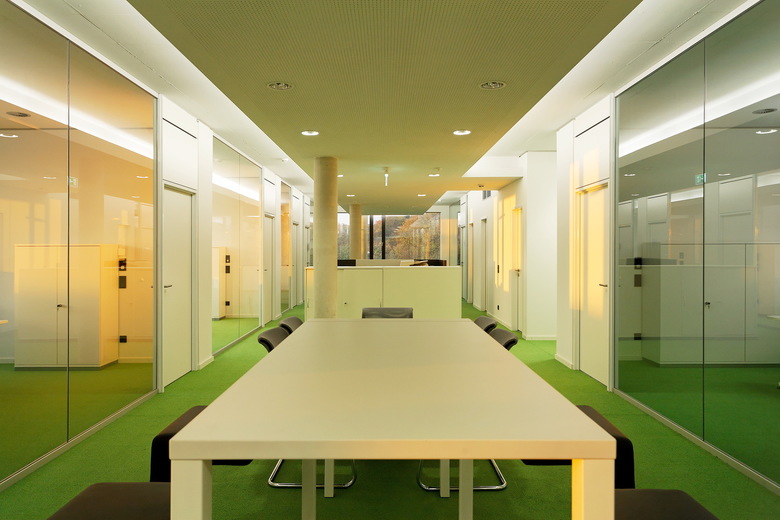 Flexibilität – Die Struktur des Gebäudes lässt vielfältige Nutzerszenarien zu. Eine jeweils separate Erschließung und Vermietung der einzelnen Winkel ist möglich. Das Haus lässt sich in 6 separate Nutzungseinheiten aufteilen. Parallel sind auch alle Aufteilungen bis hin zu einem Nutzer des gesamten Gebäudes darstellbar. In der genannten Flexibilität lässt sich die Unternehmensstruktur der Nutzers als Holding mit den Tochterunternehmen ideal darstellen: die Unternehmensgruppe ist aus verschiedenen Einzelbausteinen aufgebaut, die zusammen ein Ganzes formen – ablesbar in den einzelnen Winkeln, aus denen sich der Baukörper zusammensetzt. Die klare Ausrichtung auf den zentralen Innenraum und das zusätzliche Angebot der Terrassen zum Atrium bieten eine räumliche Verstärkung der Unternehmensphilosophie, die stark auf den Aspekten Ganzheitlichkeit, Gemeinschaft und Kommunikation basiert.
