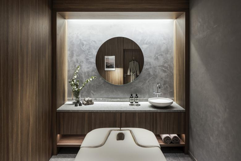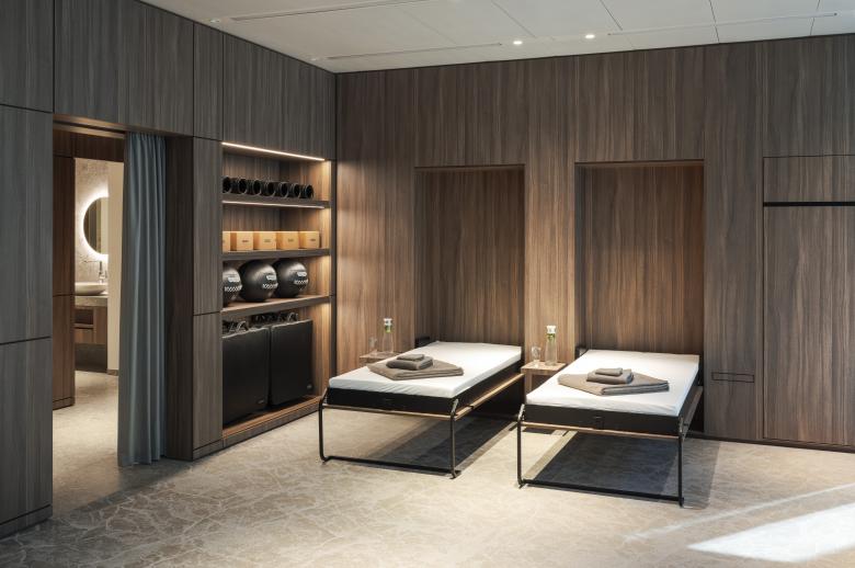 Das Konzept entstand in enger Zusammenarbeit mit dem unternehmenseigenen LIXIL Global Design und Brand Identity Team. Der hochwertige Sauna-, Spa- und Fitnessbereich hat eine geradlinige, edle Designsprache, die von ästhetischen Kontrasten geprägt ist. Warme Hölzer und kühlere Steinmaterialien, ein Wechsel von hellen und dunklen Oberflächen verbinden sich zu einer anspruchsvollen Innenarchitektur. Die hochwertige Ausstattung der großzügigen Räume und nutzerfreundliche Handhabungen stellen das Wohlbefinden in den Fokus des Erlebnisses und machen das GROHE Water Experience Center zu einem besonderen Ort der Produktinszenierung bei der Gestaltung von Räumen für Fitness, Wellness und Erholung.
