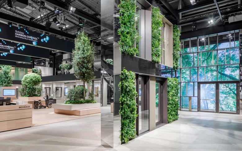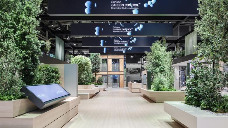 Auf dem Schüco Stand dreht sich alles um nachhaltiges Bauen und Renovieren. Unter dem Claim „Building Networks“ präsentiert das Unternehmen zukunftsorientierte Services und ein werkstoffübergreifendes Produktportfolio. Mit dem Launch der Kampagne Schüco CARBON CONTROL Minimising CO2 in construction stellt Schüco auf der internationalen Baumesse seinen Beitrag für objektspezifische CO2 Minimierung in allen Bauphasen zum ersten Mal vor.