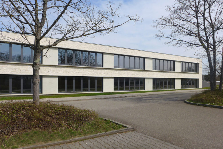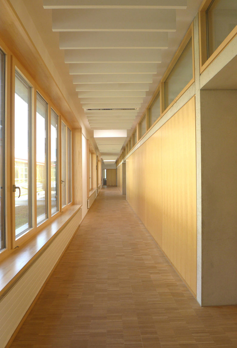 Erweiterung des Kreisberufschulzentrums um 12 Klassenzimmer als zweigeschossiger Stahlbetonanbau mit Klinker- und Sichtbetonvorsatzschale.