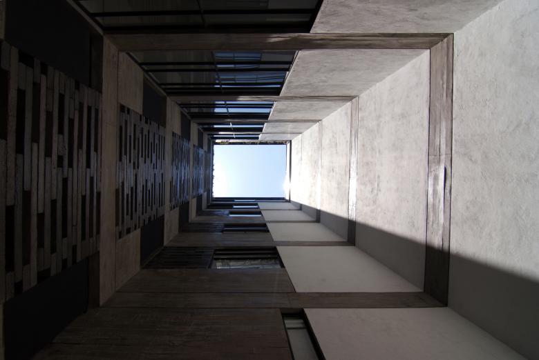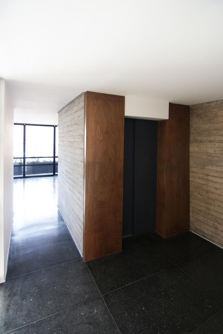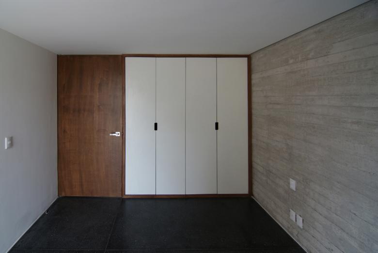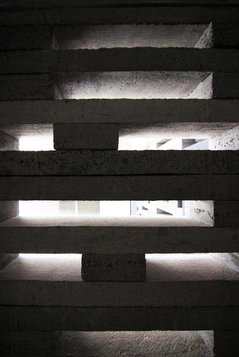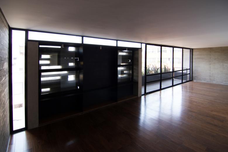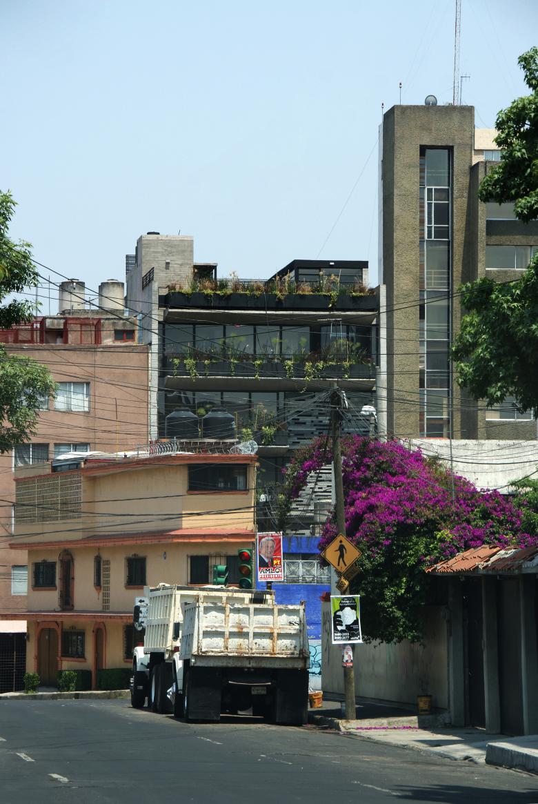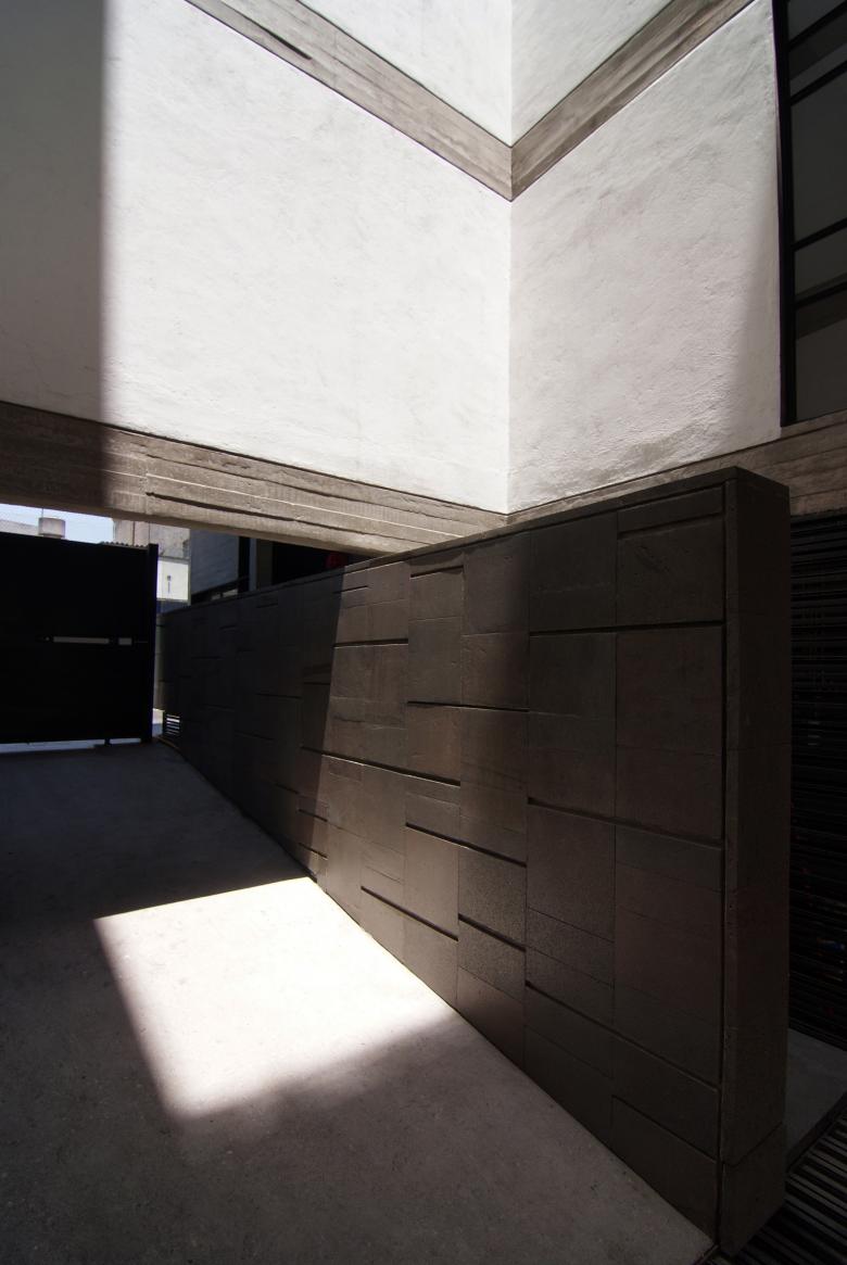 El edificio está conformado por cinco departamentos, uno por cada nivel. Dado el tamaño del terreno se opto por una estructura de concreto, solo 2 cartelas en las colindancias unidas por una losa de concreto reticular, por esta razon no hay columnas ni muros de carga en todo el edificio, lo que lo dota de una total flexibilidad en todos los espacios interiores. La mayoría de los materiales tanto de la estructura como de acabados, incluyendo los pisos de terrazo y la celosía de concreto, fueron hechos en sitio.