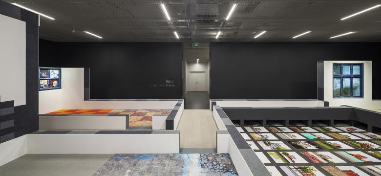 Display and Relay – Li Qing Solo Exhibition is the second show of the series exhibition Nine-Tiered Pagoda: Spatial and Visual Magic at Pingshan Art Museum.The exhibited works of artist Li Qing in this exhibition, like Hangzhou Houses, Things You Can Take Away, and Window series, are all related to abandoned houses. With “new ruins” as the concept, DAS used light materials like carpet, felt, gypsum board, and foam black to construct a site of architectural ruins in the exhibition hall.