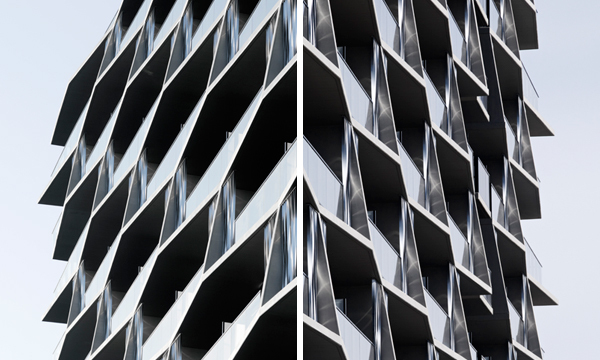 Clara appears to dissolve into the park that surrounds it; we clad the first four levels in black laser-cut panels featuring an abstracted sunflower pattern that calls to mind the vegetal detailing and symbolism of the acanthus leaves of the Corinthian order. This contemporary version of the ancient decoration makes the floral eruption part of the surface itself.