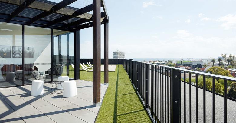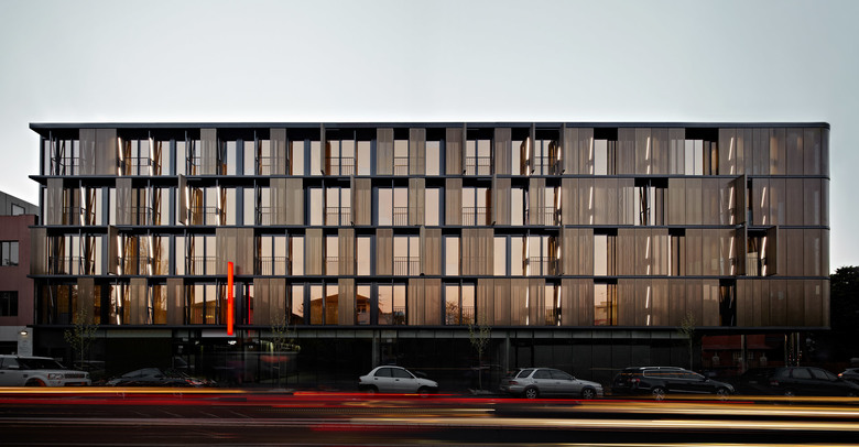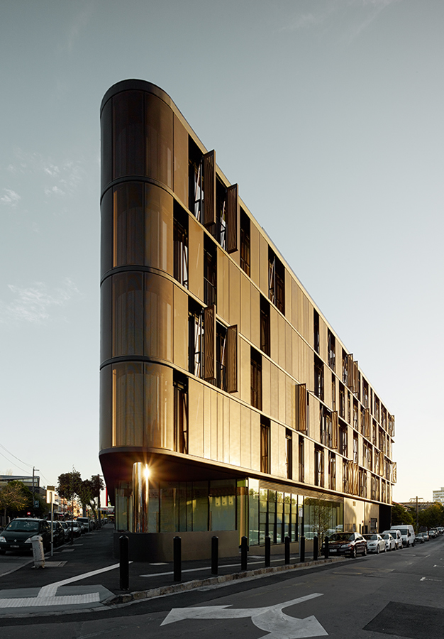 It has inspired a dedicated fan web-site, generations of fancy-dress costumes and countless YouTube tribute videos, and now a building. That’s right, Luna, Elenberg Fraser’s new four-story residential project on Barkly St, St Kilda, is based on Princess Leia’s infamous "dancing girl" gold bikini, featured in Star Wars, Episode VI: Return of the Jedi. While Luna’s curvaceous form echoes the draping lines of Leia’s usual white robes, the shimmering gold glass and metal mesh materials are matched perfectly with the colors and textures of the gold brassiere.