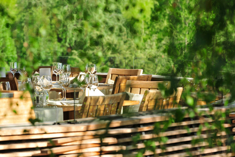 Das Gesamtkonzept sieht vor, das Hotel in den großen Park an seiner Hanglage, mit verschiedenen Ebenen, Räumen und Elementen einzubinden. Die Bäume und Strukturen des bestehenden, klassisch angelegten Parks werden weitestgehend erhalten aber neu vernetzt um heutigen, modernen Ansprüchen zu genügen. Eine neu konzeptionierte und für verschiedene Nutzungen ausgelegte Gastronomiefläche verbindet auf elegante Weise den Hotel und Restaurant Empfang über einen einladenden schattenspendenden Bereich mit der südseitigen Sonnenterrasse am Hang. Beim Spazieren durch ein bestehendes Birkenwäldchen, unterpflanzt mit sanften Wellen aus Farnen und Hortensien, erschließt sich dem Gast der eigentliche Park. Am plätschernden Brunnenplatz umschlossen von einem Bogen aus duftendem Flieder, erhebt sich dann das Adlernest. Dieses wird wohl das wichtigste neue Element des Parkhotel Sonnenhof sein. Symbolisiert der Adler doch seit langem schon die Sonne und die Herrscher dieser Welt, inspirierte er auch die Landschaftsarchitekten, hier etwas Besonderes zu kreieren.