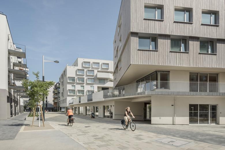 Der Gebäudekomplex besteht aus dem Clusterhaus (feld72) und dem Wohngruppenhaus (transparadiso), die durch eine gewerblich genutzte Stadtsockelzone verbunden sind. Neben Wohnungen, Büros, Gewerbe- und Werkstattflächen bietet das Clusterhaus 3 Wohncluster, die mehrere autarke, mit Bad und Kleinküche ausgestattete Studios, Gemeinschaftsküchen und Gemeinschaftsräume zu zeitgemäßen Wohngemeinschaften zusammenfassen und Lebensraum für Wohnformen außerhalb des klassischen Familiensystems bieten. Die Stadtsockelzone mit Stadtwerkstatt richten sich an UnternehmerInnen, die nach gemeinsamer Nutzung von Infrastrukturen in einem kommunikativen und innovativen Arbeitsumfeld suchen. Der darüberliegende Stadtbalkon verbindet die beiden Gebäude und vernetzt alle Nutzungen und Funktionen in einem halböffentlichen Freiraum.