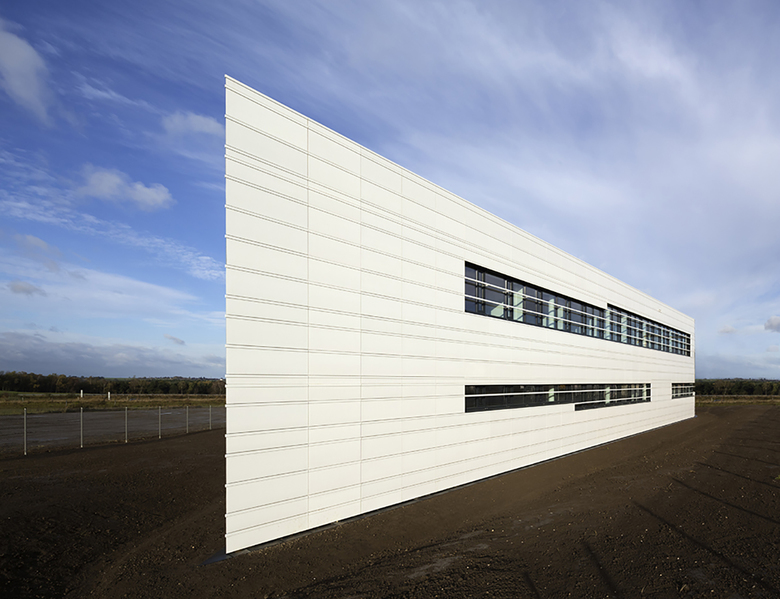 Hermsdorf, 20.5.2014 Der am 7. Mai eingeweihte Forschungsbau von Gewers Pudewill wurde aufgrund der dynamischen Entwicklung des IKTS am Standort Hermsdorf in Thüringen benötigt. Die Berliner Architekten konzipierten den zweigeschossigen und über 5.700 Quadratmeter großen Erweiterungsbau als einen markanten und identitätsstiftenden Solitär. Südlich der Bestandsbauten des Instituts und eingerahmt von Industriegebäuden sowie der Autobahn A9 reagiert der Baukörper in Form eines Parallelogramms auf die heterogene Umgebung. Zugleich schafft der Neubau auf diese Weise eine Verbindung zu Bestandsgebäuden des Instituts und lässt nach Süden Raum für künftige Erweiterungen.