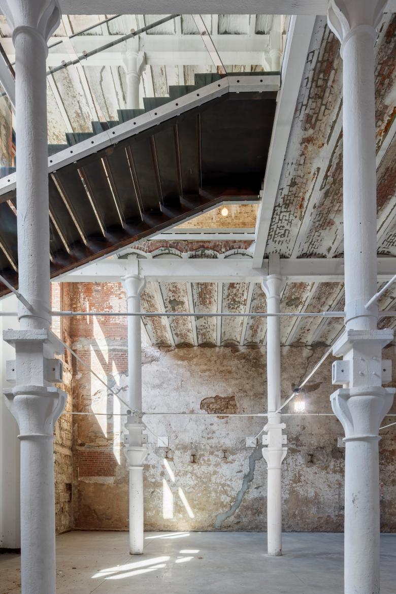 The Malt House renovates and expands an early 20th-century warehouse block for mixed use development. The scheme preserves the original building—built over time as a brewery—and places new construction above it, clearly demarcating it from the old. Strategic architectural and structural interventions maintain the spatial quality of the complex to support the new program. A new glass facade completes the street wall, melding past and present through its treatment of scale, texture and color. Above the existing setback, five new stories of “Class A” commercial office space rise as a minimalist, reserved glass volume.
