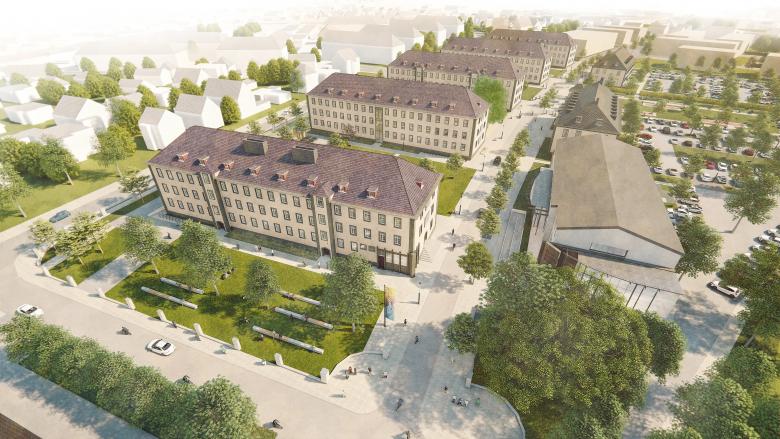 Die Konversionsfläche soll in die umliegenden Quartiere und in das Stadtgefüge integriert werden und durch attraktive Freiflächen einen Mehrwert für die Bewohner und Nutzer des Campus generieren. Der prägende Charakter des Ensembles aus