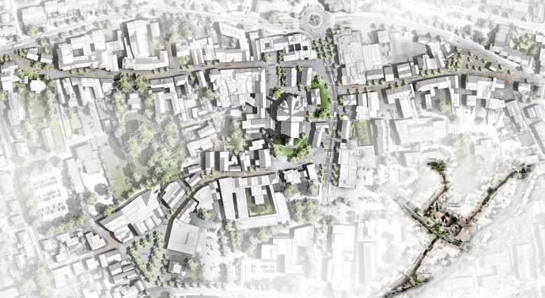 Der „Kirchenhügel” und der Marktplatz um die Kirche St. Martinus werden in unserem Konzept gestärkt und als historisches Herz sowie „Drehscheibe” der