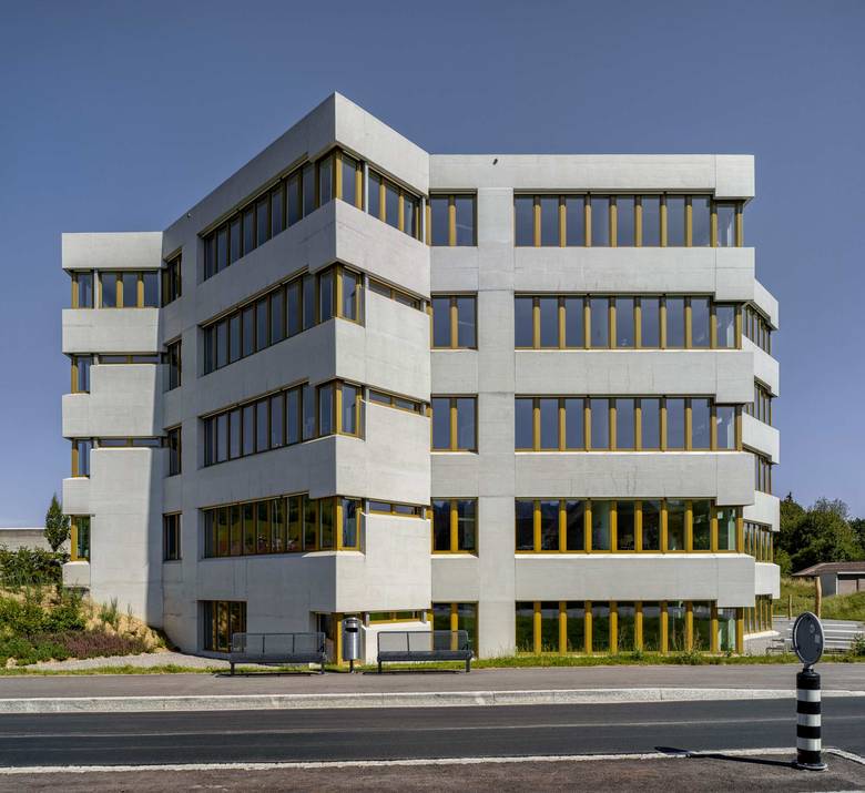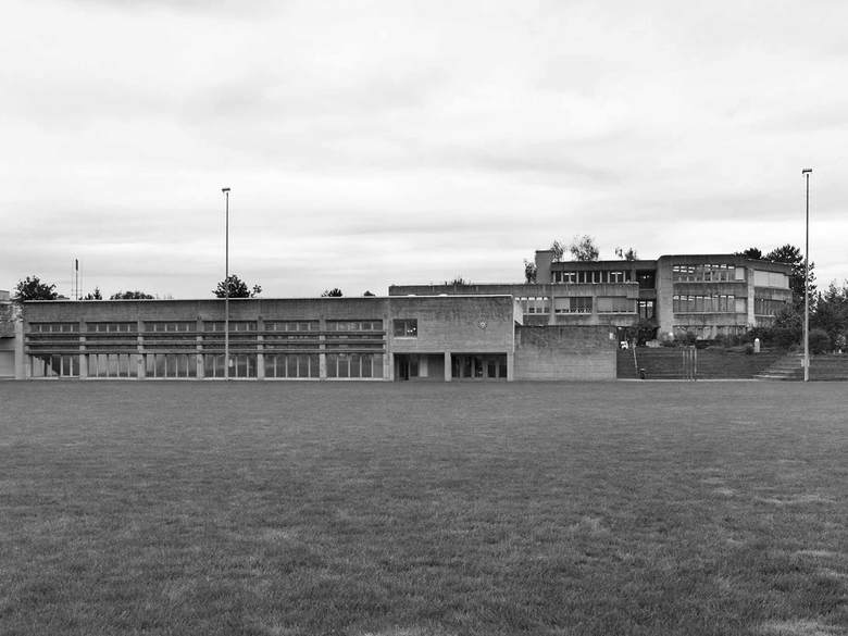 Als Antwort auf den grossen Mehrbedarf an Unterrichtsräumen wird der Altbau um ein Geschoss aufgestockt. Der konzeptionelle Ansatz des Weiterbauens ist sehr direkt umgesetzt. Die in Sichtbeton ausgeführte Aufstockung nimmt die bestehenden Fensterbänder und die Detaillierung sowie das Schalungsbild auf. Damit stehen die Neubauteile in engem Dialog mit dem Bestand und differenzieren sich über feine Nuancen erst auf den zweiten Blick.
