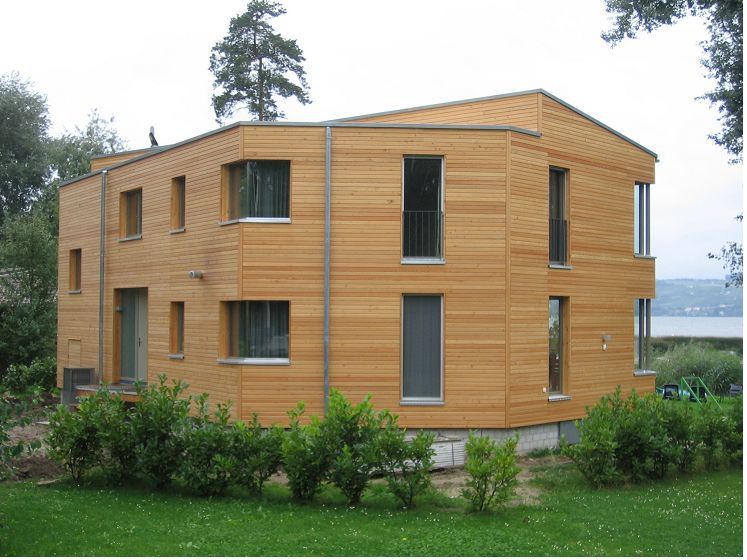 Innerhalb von nur 30 Arbeitstagen haben wir dieses Gebäude in Holzelementbau ab OK Streifenfundament fertiggestellt. Ein Haus in dem man sich wohlfühlt. Im Einklang mit der Natur haben wir einen kristallinen Körper geschaffen, welcher sich zum See hin öffnet. Das Erdgeschoss mit vorgelagerten Terrassen dient dem Wohnen und Essen, im Obergeschoss befinden sich die Schlafräume mit zentralangeordnetem Nassbereich und Aussicht auf den Mont Vully. Ein Wunderwerk an schönster Lage am Murtensee ist entstanden. Ein Haus in dem man sich wohlfühlt – von Anbeginn, wie vorgegeben…