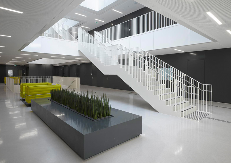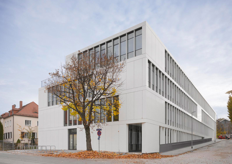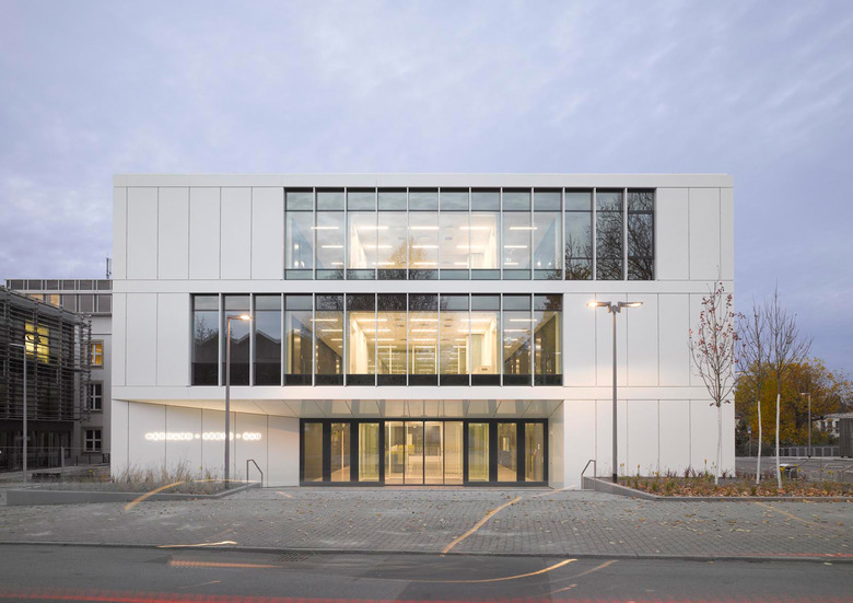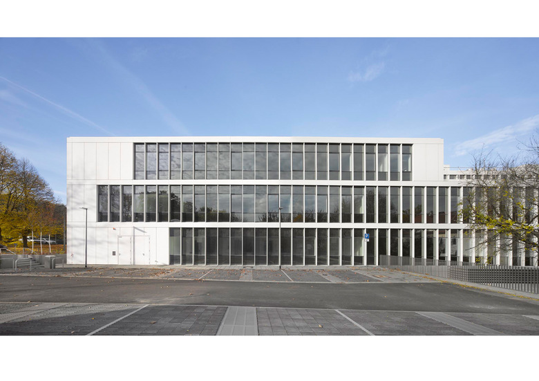 Das Gebäude schiebt sich in die Höhendifferenz des Grundstücks von 4–5 Metern ohne dass die Traufe dem Gelände folgt. Damit präsentiert es sich im Süden drei- und im Norden viergeschossig. Im Neubau werden modernste technische Anforderungen erfüllt und zudem räumliche Angebote für interdisziplinäre Kommunikation, Austausch und Entspannung geschaffen. Mittig teilt er sich in einen „internen“ Laborbereich und einen „öffentlicheren“ Bürobereich. Ein großer Raum zur Kommunikation und Erschließung verbindet beides.