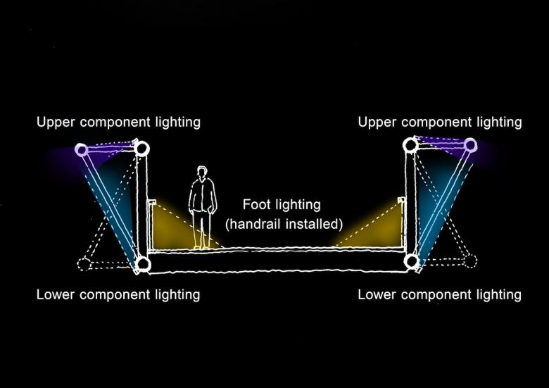 三次元的に形状を変化させることで滑らかな動きを表現し、橋を渡る時にその動きが感じられる楽しさのあるデザインとなっている。