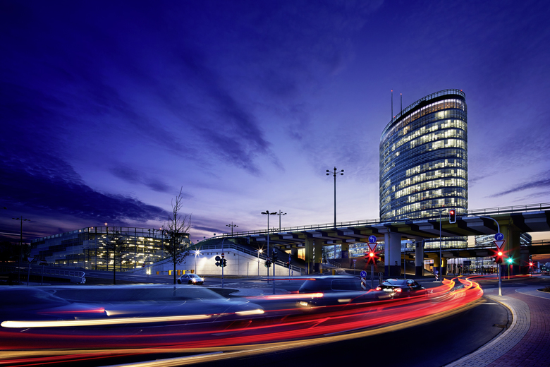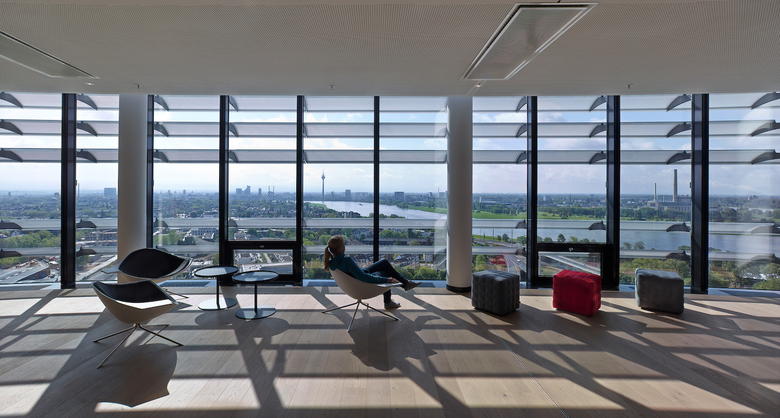 Auf der Brachfläche einer ehemaligen Brauerei im linksrheinischen Düsseldorfer Stadtteil Heerdt erfolgte der Neubau der Konzernzentrale von Vodafone Deutschland, welche die bisher über die Stadt verstreuten Geschäftsbereiche in einem Campus zusammenfasst. Städtebaulich fungiert der für 4700 Arbeitsplätze konzipierte Komplex mit einem 75 Meter hohen elliptischen Büroturm als neue Landmarke, die dem Besucher als markantes Entreé im Westen der Stadt begegnet und sich in die traditionsreiche Riege Düsseldorfer Hochhausbauten einreiht.