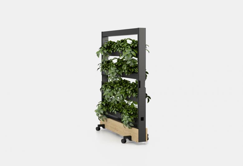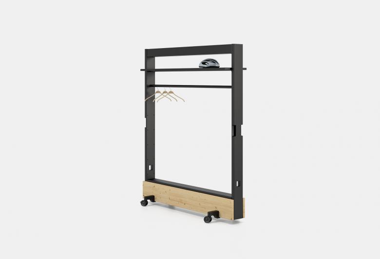 Ein mit Massivholz verkleideter Sockel verleiht der Dancing Wall das perfekte Gewicht, so dass sie trotz der kurzen Ausleger mit Rädern einen guten Stand hat und sich immer noch leicht verschieben lässt.