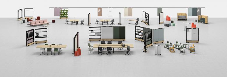 Kombiniert man verschiedene Dancing Walls miteinander, lassen sich zahlreiche Raum- und Arbeits-Situationen kreieren. In Sekundenschnelle können die Mitarbeitenden damit auf Veränderungen von Teamgrösse, Firmenstruktur oder Raumfunktion reagieren – ohne Umbauten oder Monteur, und ohne zusätzliche Kosten und Emissionen.
