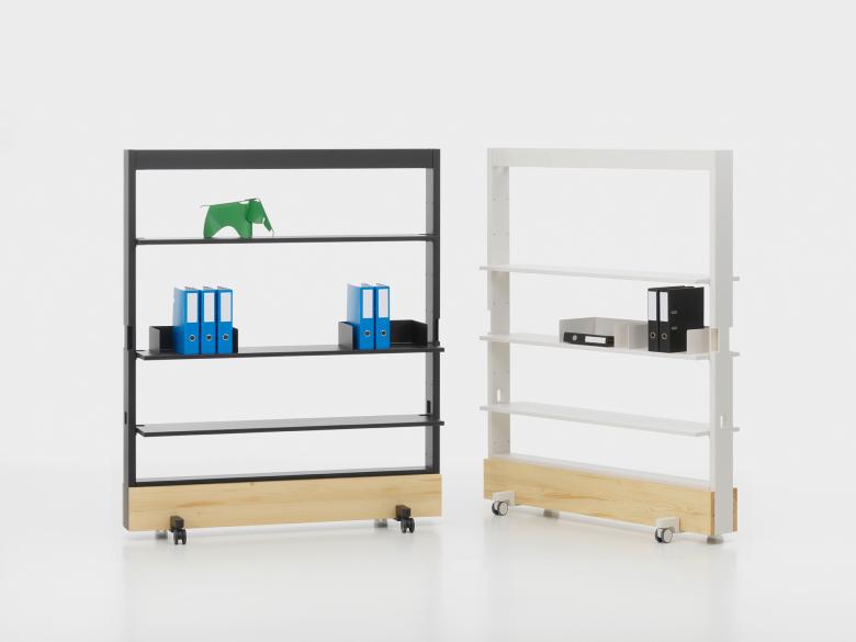 Mit der mobilen Trennwand lassen sich Räume ganz einfach in flexible Zonen gliedern. Die Dancing Wall besteht aus einem Metallrahmen, der mit verschiedenen Elementen bestückt und so in unterschiedlichen Ausführungen genutzt werden kann: Als Bücherregal, TV-Wagen, Garderobe, Pflanzenwand oder als vertikale Arbeitsfläche mit abnehmbaren Whiteboards und Pinnwänden.