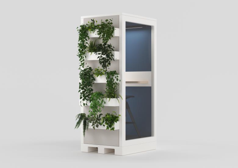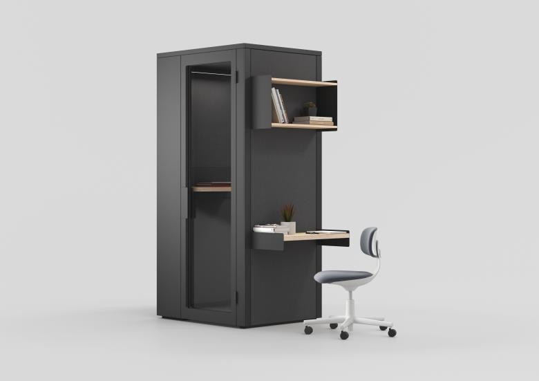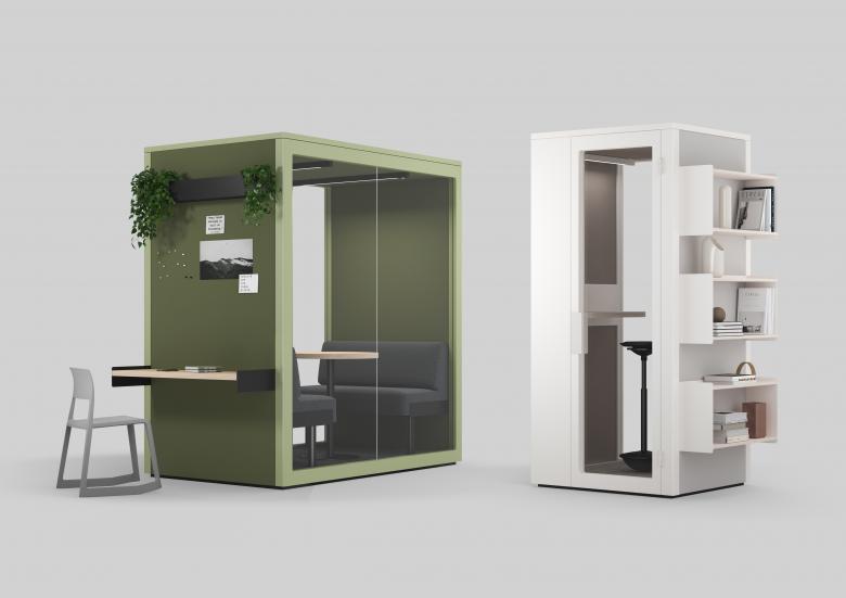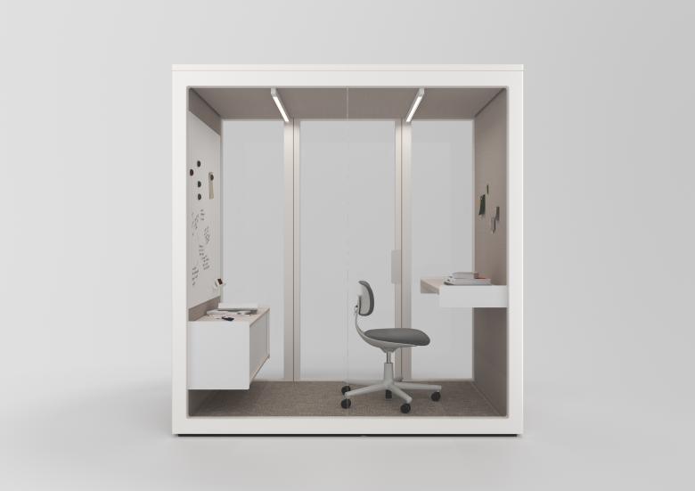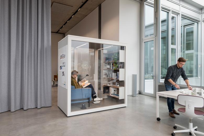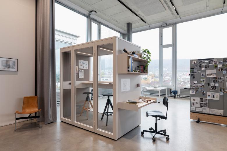 Stephan Hürlemann vermisste auf dem Markt eine schallisolierte Phonebooth, die den Aussenraum aktiviert und sich gleichzeitig optisch zurücknimmt. Deshalb hat er in Zusammenarbeit mit Erich Keller eine multifunktionale Raum-in-Raum-Produktfamilie entwickelt.