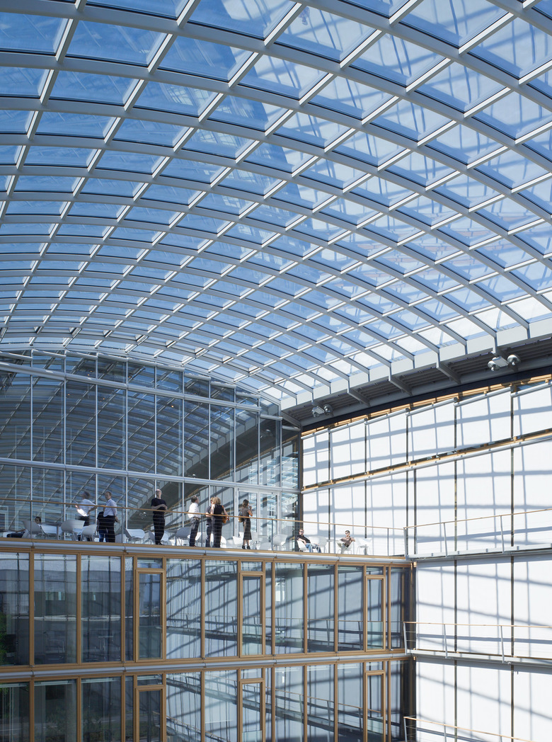 Die neue Lufthansa Hauptverwaltung repräsentiert mit seiner Transparenz die Aufgeschlossenheit und Weltoffenheit eines der bekanntesten deutschen Unternehmen – und hat nicht ohne zahlreiche Auszeichnungen erhalten, darunter den RIBA Award 2008, den International Architecture Award des Chicago Athenaeum Museum of Architecture and Design und eine EU-GreenBuilding-Partnerschaft-Zertifizierung. Die primäre Herausforderung des Projekts war, eine hochwertige und kommunikative Büro- und Arbeitswelt zu realisieren und gleichzeitig das Gebäude von seinem mehr als geschäftigen Umfeld zu isolieren.