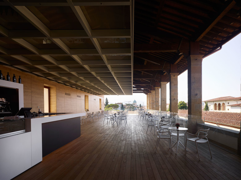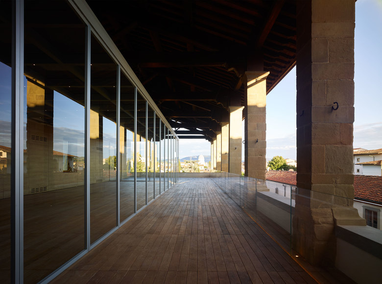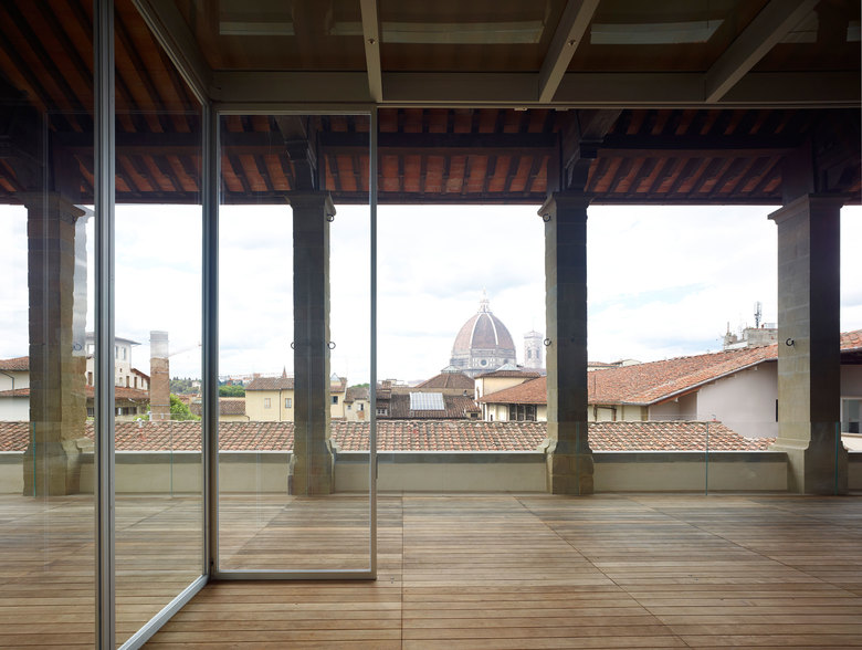 1. risolve i problemi di accessibilità attraverso la realizzazione di una nuova porta e di un nuovo ingresso sulla piazza monumentale della Santissima Annunziata, l’apertura al pubblico di uno spazio inutilizzato al livello seminterrato e infine un nuovo sistema di scale e ascensori per rendere accessibili tutti i piani dell’edificio;