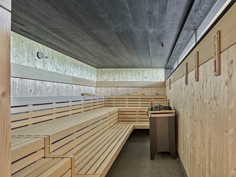 Für alle, die sich entspannen möchten, steht ein umfangreicher Wellnessbereich zur Verfügung. Dieser Bereich ist mit einer finnischen Sauna, einer Appenzeller Sauna, einem Kaltwasserbecken sowie Massage- und Ruheräumen ausgerüstet.
