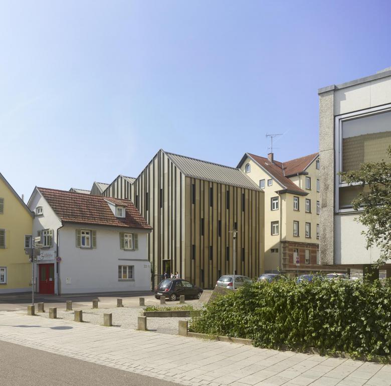 STÄDTEBAULICHE EINBINDUNG / DENKMALSCHUTZ - Das Gebäude liegt im historischen Stadtzentrum der Stadt Esslingen und ist umgeben von denkmalgeschützter Bausubstanz. Insofern bestand ein hoher gestalterischer Anspruch hinsichtlich der Einfügung des Laborneubaus in den Stadtkörper. Dem wird der Neubau auf unterschiedliche Weise gerecht.
