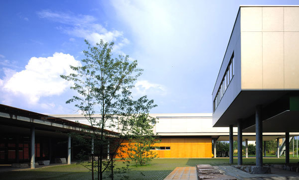 Die Planfigur wird dominiert durch den quadratischen, 100 x 100 m großen Unterrichtsbereich im OG, bestehend aus 2 Klassenriegeln und den naturwissenschaftlichen Fachräumen, verbunden durch einen Verbindungssteg und großzügige Dachterrassen, die als zusätzliche Pausenflächen genutzt werden können.Der elliptische Baukörper im 2. OG enthält die Bibliothek und den Multimediabereich. Im Erdgeschoss sind Verwaltung, Lehrerbereich, Aula und Mensa untergebracht sowie als einziger erdgeschossiger Unterrichtsbereich die musischen Fächer - mit Ausgang ins Freie zum Werken, Malen und Experimentieren.