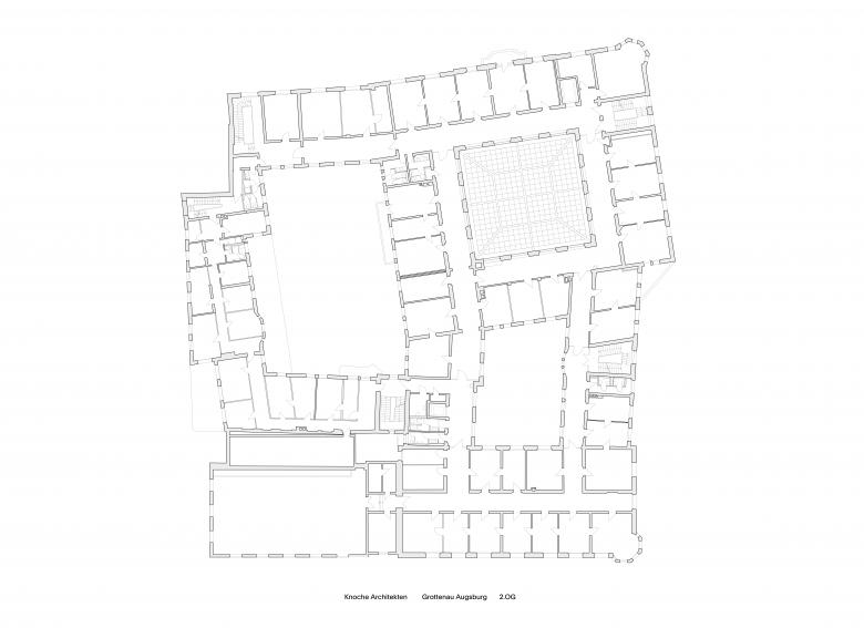 Betreten werden die unterschiedlichen Institutionen über die tagsüber geöffneten Höfe, die ein Durchwandern des Komplexes von der Hauptstadtachse Grottenau bis zur Kleinen Grottenau in Richtung Stadtbibliothek und Stadtmarkt ermöglichen. Über getrennte vertikale Erschließungen werden Besucher und Besucherinnen zielgerichtet zu den etwaigen Anlaufstellen verteilt: Im ersten und zweiten Obergeschoss befinden sich Büroflächen für die städtischen Ämter, in den zwei darüber liegenden Geschossen sind die Nutzflächen der Musikhochschule untergebracht. Hierbei wurde die historische Raumstruktur für Büros und Seminarräume weitestgehend erhalten und durch die Aufstockung mit großmaßstäblicheren Nutzungseinheiten wie Probebühnen und Studios ergänzt.