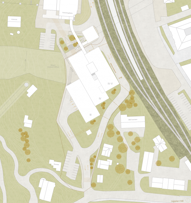 Fussgängerströme zwischen den Bereichen Parkhaus, Vertikal Link, Talstation,
