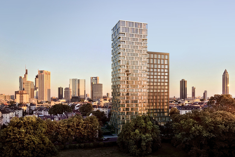 Über einem gemeinsamen Sockel ragen zwei Türme unterschiedlicher Höhe auf annähernd quadratischem Grundriss empor. Die Türme sind gegeneinander versetzt und über die gesamte Höhe miteinander verbunden. Bislang durch die allseitig gleiche Spiegelglasfassade als ein Volumen wahrgenommen, wird die Umnutzung des Doppelturms zu einem Ensemble aus Wohn- und Hotelturm nach der Revitalisierung auch an der Fassade ablesbar sein. Der 27-geschossige Wohnturm wird eine helle, offene und transparente Glasfassade mit Öffnungsflügeln erhalten, die mit plastischen Blechpaneelen gefasst ist. An allen vier Fassadenseiten und über alle Geschosse versetzt sind Loggien angeordnet. Der 20-geschossige Hotelturm erhält eine dunklere, aber ebenfalls transparente Fassade.