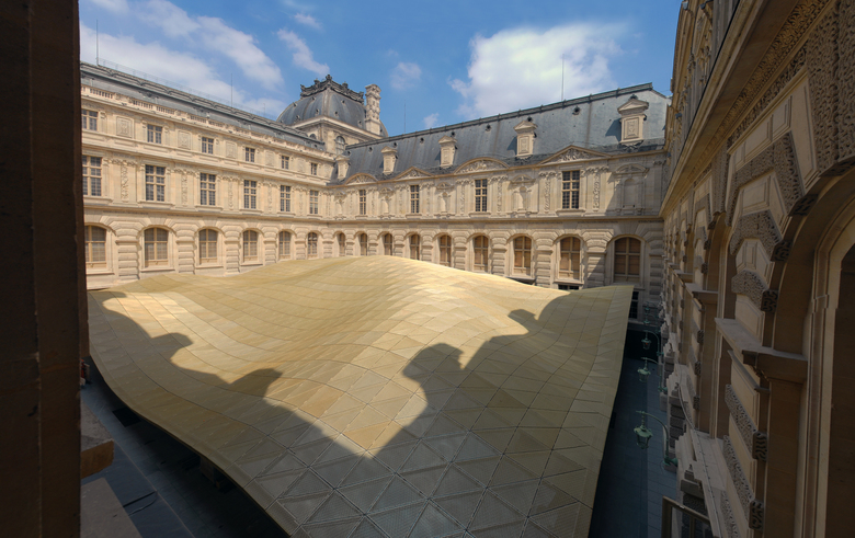 From inside the exhibition rooms, the visitor will be able to admire the play of folds and undulations in the covering which will add a poetic dimension to the overall effect.