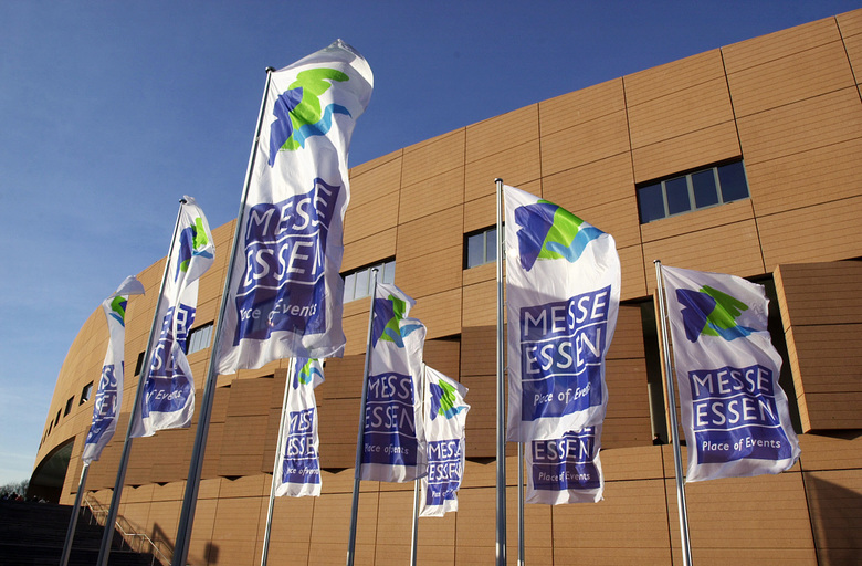 After doing the Milan Fairgrounds, Bellini was called to realise a project to add on the Essen Fairgrounds.