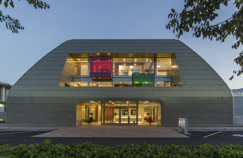 Sull’area precedentemente occupata da un fabbricato commerciale degli anni Settanta si è costruito il nuovo edificio secondo un più elevato profilo qualitativo e tecnico-prestazionale, nel rispetto dei più stringenti parametri in merito ad impegno energetico di esercizio e sostenibilità generale dell’intera opera (Life Cycle Assessment). Ne è risultato un edificio contemporaneo nell’aspetto, nei materiali e nel rapporto che esso instaura con il territorio e con l’ambiente in genere, caratterizzato anche dal ridotto impatto energetico-ambientale e per lo spiccato efficientamento termico ed acustico perseguito dai progettisti, che colloca l’opera nell’area di certificabilità in Classe A/A+.